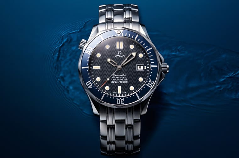 现在欧米茄炙手可热的海马潜水300米于1993年研发完成,其具有单向旋转表圈、排氦阀门、镂空指针与立体夜光时标等设计,当年法国人Roland Specke在纳沙泰尔湖完成80米活水自由潜水世界纪录时,手上便戴着海马潜水300米证明手表的性能无虞,后来更在1995年因为007电影《黄金眼》男主角皮尔斯布洛斯南佩戴而声名大噪,至2018年系列迈入25周年经过大改款重新问世,搭上现今市场的潜水表热潮,使得海马潜水300米成为欧米茄目前最具知名度的潜水表得意之作。