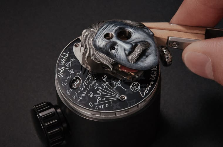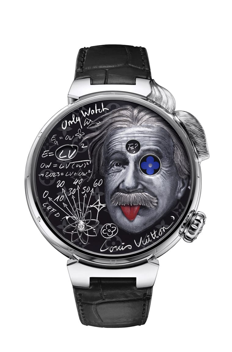 ▲LV为2023年Only Watch慈善拍卖会精心制作一款Tambour Einstein Automata,将天才科学家搬上手表面盘。