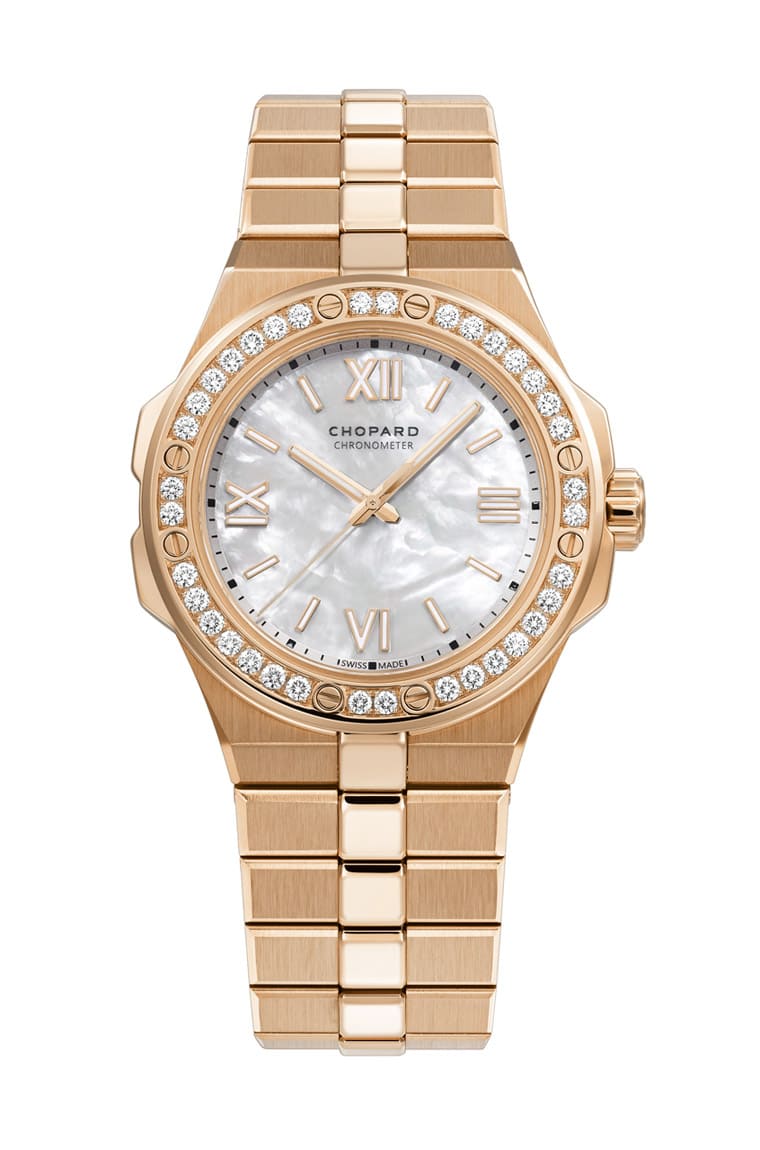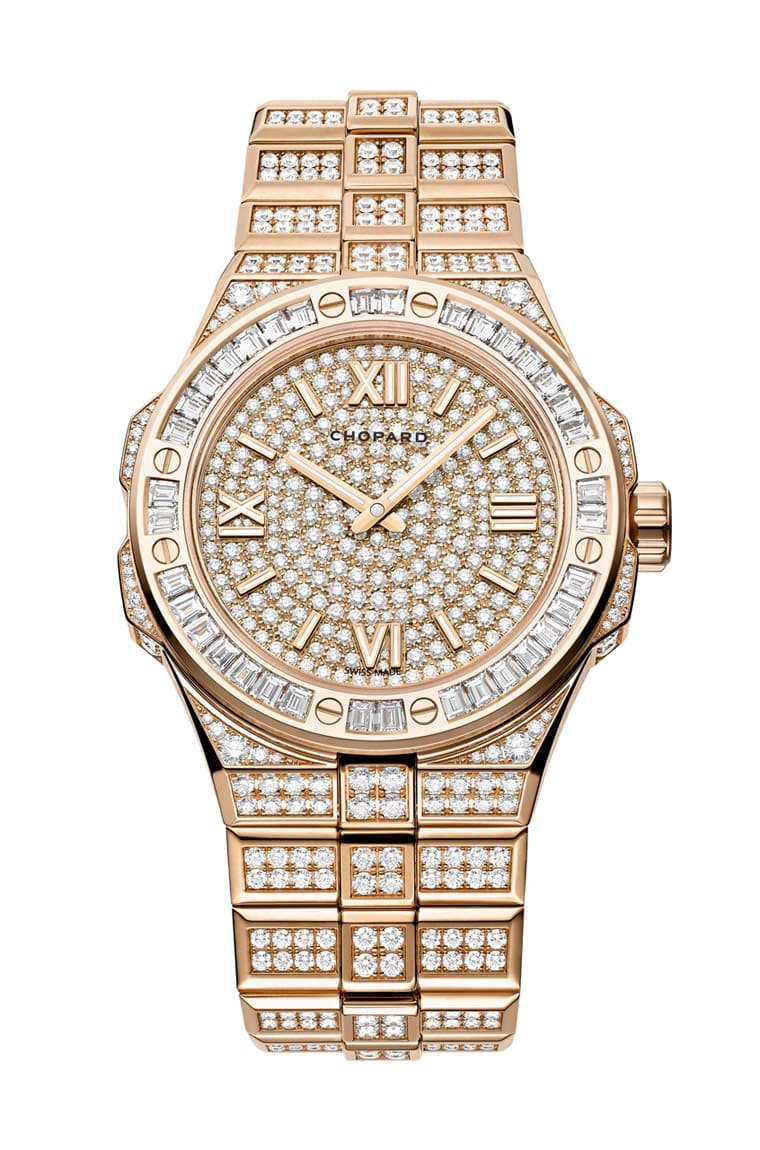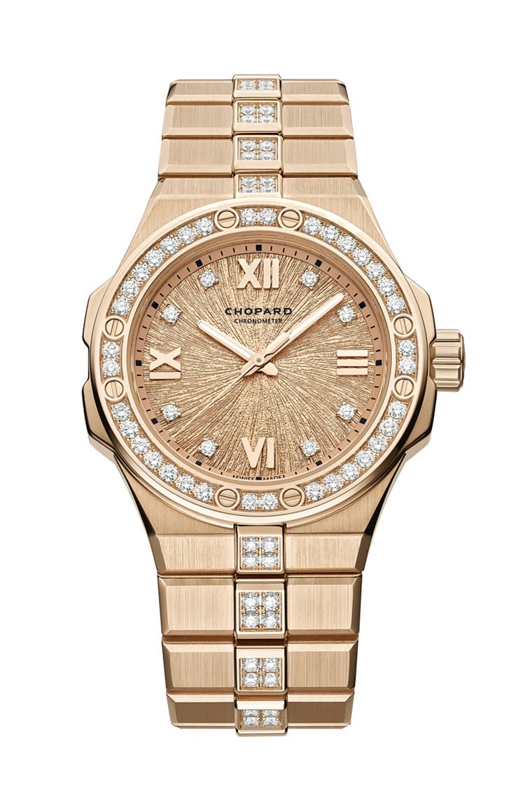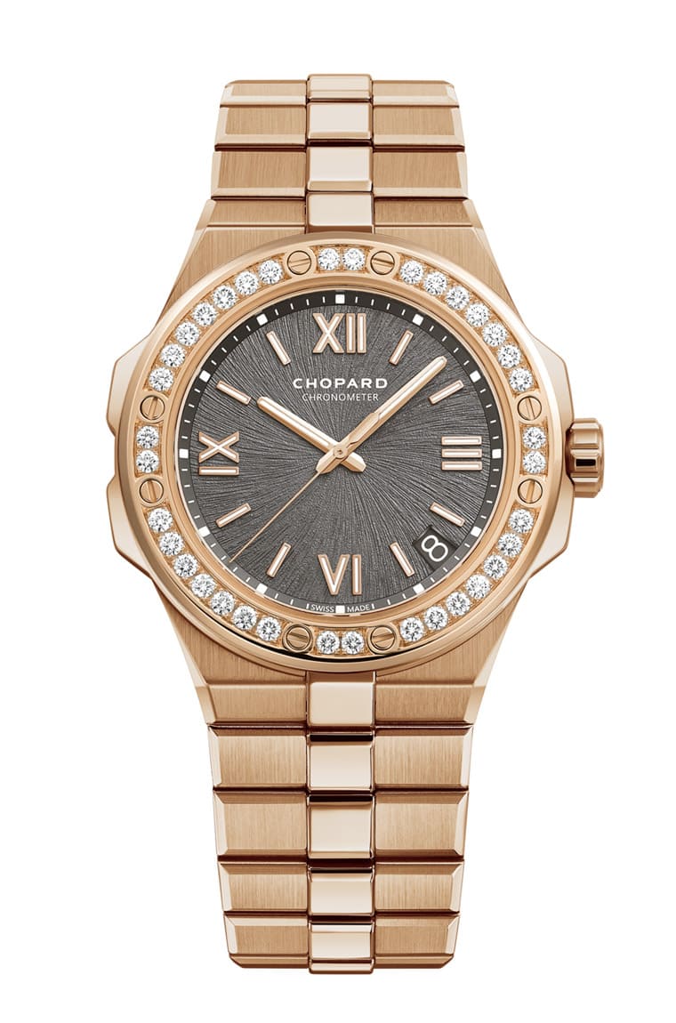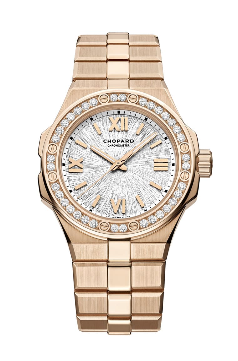 ▲萧邦Alpine Eagle系列一举发表5款皆採用玫瑰金材质,并点缀钻石的新作,其中表径尺寸共有三种。