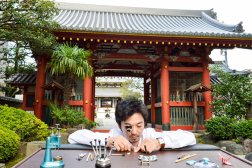 ▲ GP芝柏表年轻制表师Ryota于青山善光寺前,展现制表工艺。