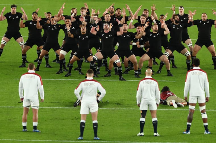 ▲纽西兰黑衫军每场开赛前都会跳哈卡战舞,作为表现高昂拼战精神的特殊仪式。
