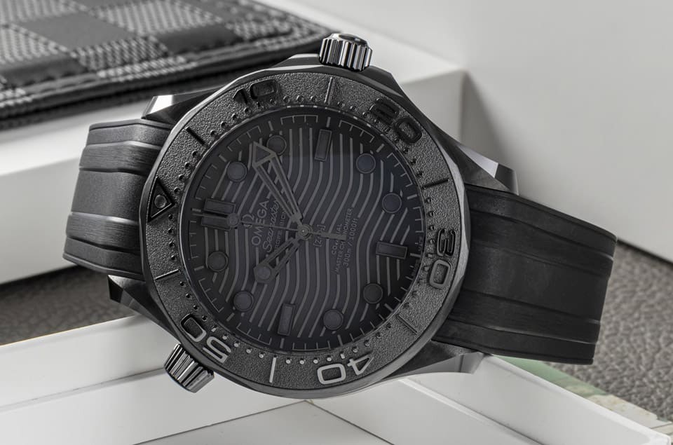 OMEGA欧米茄曾于2021年有点出人意料地推出Seamaster Diver 300M Black Black(210.92.44.20.01.003)这款作品,因为它和品牌2019年创作的Seamaster 300M Black Ceramic (210.92.44.20.01.001)大致都是黑色陶瓷材质制作而成,搭载的机芯也是同一枚,只不过前者的All Black风格更加彻底,包括表圈、表冠与排氦阀都是用黑色陶瓷打造、表圈刻度改用阳刻方式、面盘上的指针镀黑,夜光物料也换成黑色,与表圈、表冠与排氦阀用钛金属制成的Seamaster 300M Black Ceramic不同,而且Seamaster 300M Black Ceramic的夜光物料是白色的这点也和较晚推出的那款呈现明显对比。