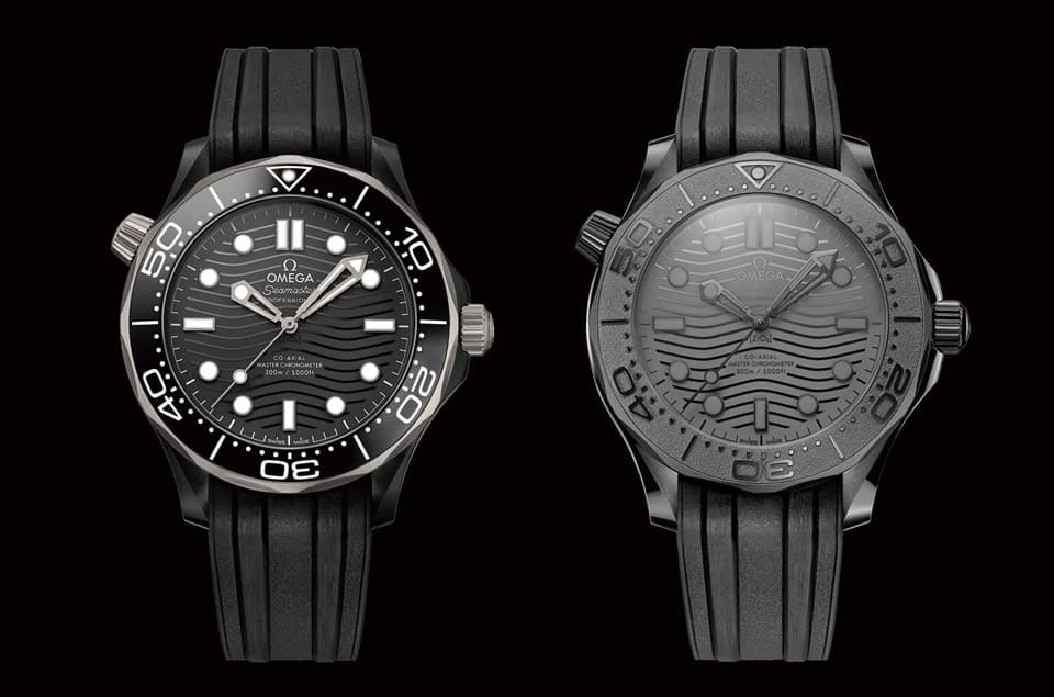 ▲左为2019年问世的Seamaster 300M Black Ceramic、右为2021年问世的Seamaster Diver 300M Black Black,两者在材质与配色细节上还是有所差异。