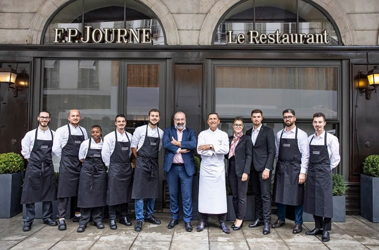 负责主掌F.P. JOURNE Le Restaurant佳餚的Dominique Gauthier在法国学艺,他先是在法国知名餐厅中累积实务经验,后来回到日内瓦美岸酒店的Chat-Botté餐厅一待就是20几年,这次他决定走出舒适圈与F.P. Journe共闯事业新天地。Dominique Gauthier的料理风格带点地中海的异国风情,他擅长在经典菜式中增添新的细节元素,目前在F.P. JOURNE Le Restaurant的菜单中,可以嚐到的招牌料理包括kadaïf炸虾、兔肉义大利饺佐松露、主厨无菜单料理与主厨精选美酒等。