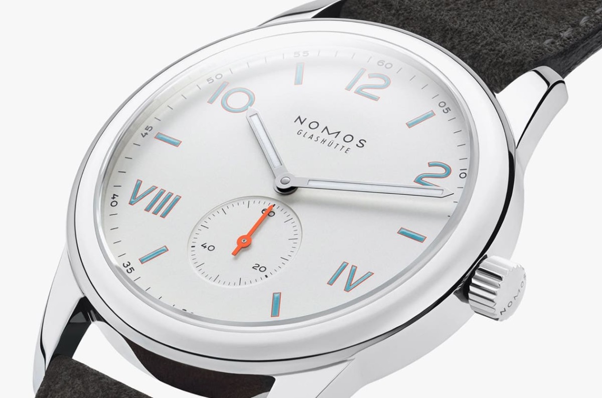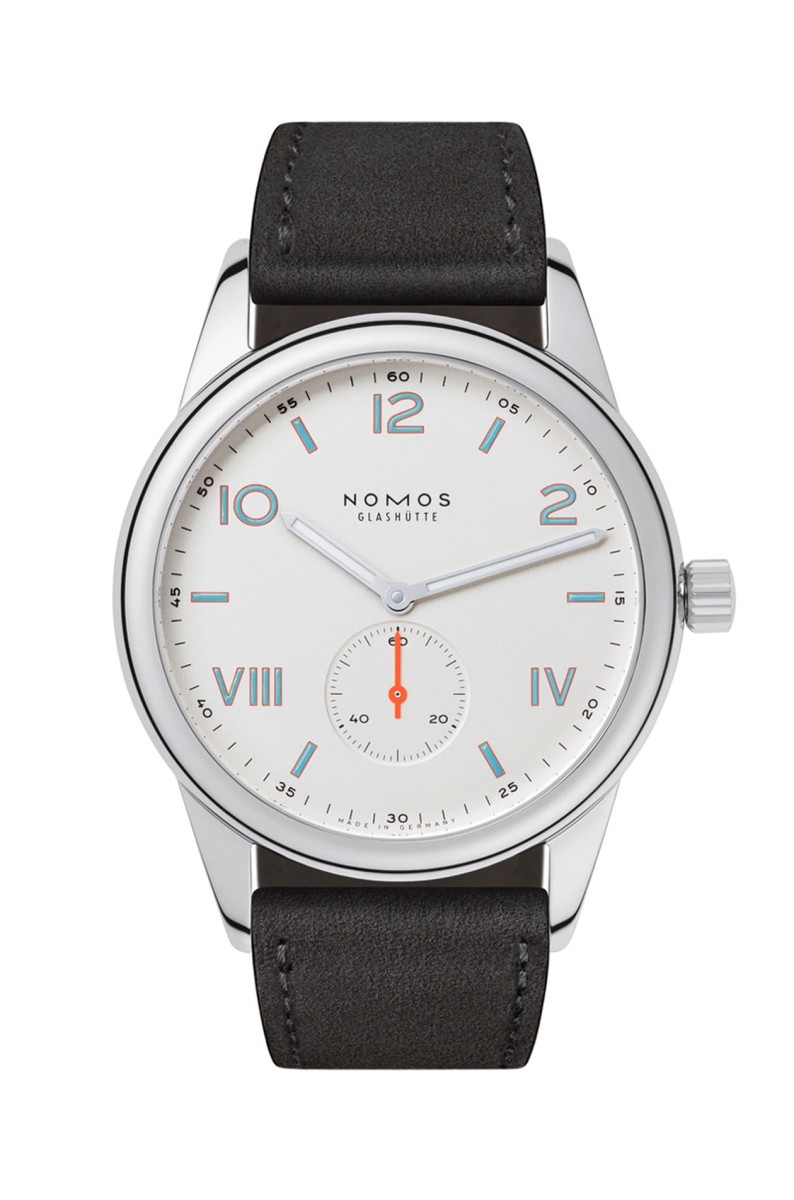 现今腕表市场偏好运动休閒类型的产品,放眼NOMOS各系列作品又以Club最能符合市场主流需求,此系列的圆形表壳结合了厚实的表耳,搭配100米以上的防水性能提供腕表强悍耐用的运动机能,此外Club系列亦为NOMOS唯一一款时标与指针皆覆有SuperLuminova夜光涂层的作品,不受环境明暗影响的清晰读时效果,这点在运动表当道的今日,也成为Club系列受到市场喜爱的重要原因。