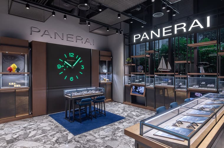 位于Diamond Towers一馆1F的沛纳海专卖店,佔地33.5坪广大空间,一举成为品牌在台湾规模最大的专卖店,随着新店开幕,沛纳海也完整引进国外最新的装潢与设计展现品牌形象与精神。整体而言,这间沛纳海专卖店融合了代表品牌重要的四项元素,包括:义式风格、航海旅程、勇者信念与高水准工艺等。ㄧ走近Diamond Towers的沛纳海专卖店,马上就会被无距离感的通透设计所吸引,同时外观少不了品牌Logo以及大幅的主打表款视觉呈现,第一眼印象就充满引人想要走进去探索的好奇心。
