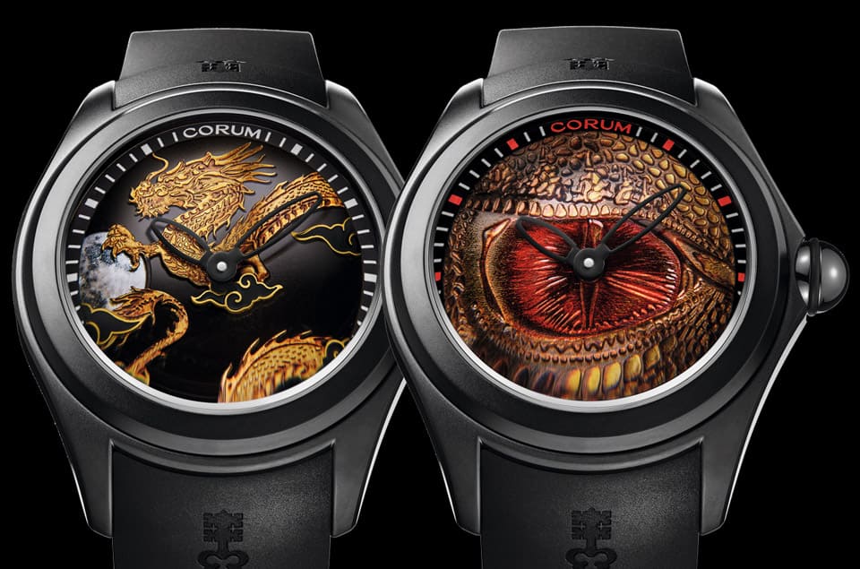 CORUM昆仑表为了迎接2024年的农历龙年和表坛众家品牌共襄盛举——创作龙年主题生肖表,品牌分别创作出Bubble 47金龙伴月手表和Bubble 47金龙之眼手表藉以庆祝寓意高贵与吉祥的龙年主题。