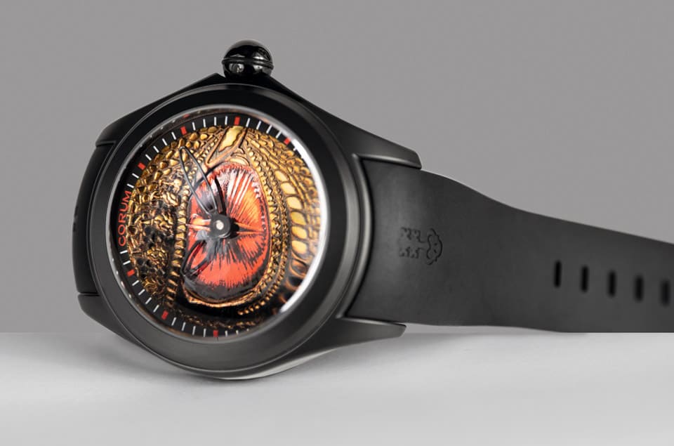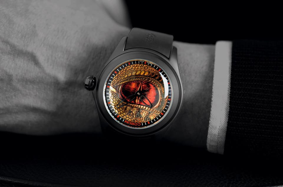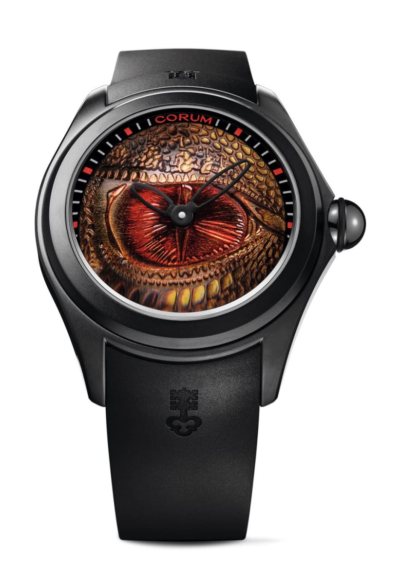 ▲Bubble 47金龙之眼手表利用泡泡表的圆顶蓝宝石水晶镜面特性,在面盘放上神龙眼睛的特写图案,品牌交互採用特殊金属铸造技术与手工,刻划出非常细致有神的眼睛造型。