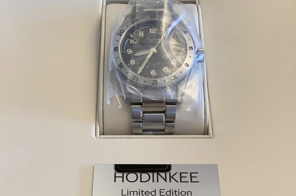 日前有幸运抢到这只浪琴表xHODINKEE联名表的表友便在爱表咖社团开心晒出自己拿到表之后的开箱照,从手表外盒看来就能发现它和一般Spirit Zulu Time的不同,原本的浅黄色外盒变成了品牌保卡般的深蓝色加浮水印设计,至于打开外盒后,裡面的表盒也从亮面的木纹表盒,改採类似先前Heritage Classic Sector Dial HODINKE联名表的设计(表盒中间有条皮带固定机制),打开盒盖后,在手表前端特别镶有一枚HODINKEE Limited Edition的金属铭牌,这些经过重新设计的配件巧思,让表主拿到表之后的感觉非常好,虽然他开玩笑表示:「官网上手滑的代价真是不小」,但是能抢到数量有限的特别版,任谁都会觉得很值得。