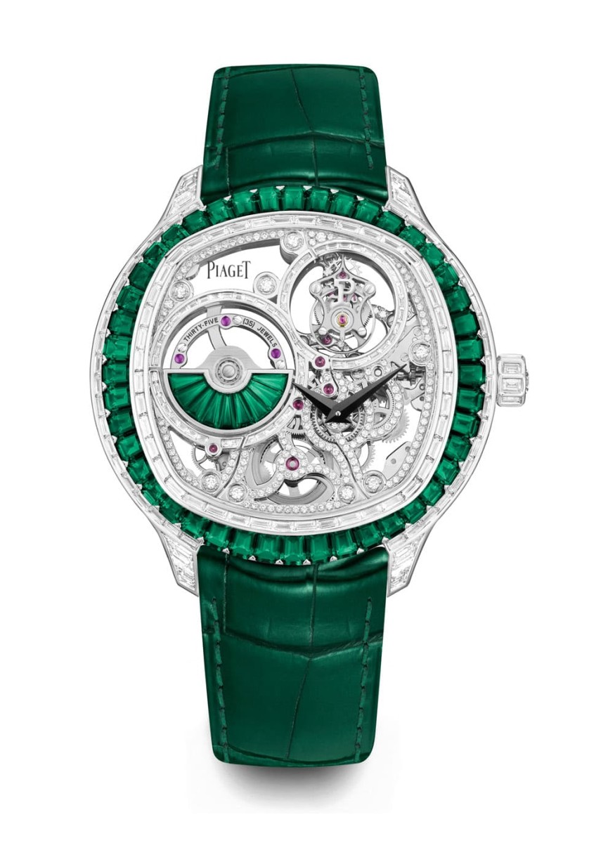 擅长珠宝工艺的PIAGET伯爵崭新打造一款Polo Emperador祖母绿钻石镂空陀飞轮,顾名思义手表奠基于Polo Emperador陀飞轮,并且结合宝石镶嵌与镂空等两大工艺,匯聚高深的制表以及装饰工艺,造就出令人叹为观止的手表杰作。