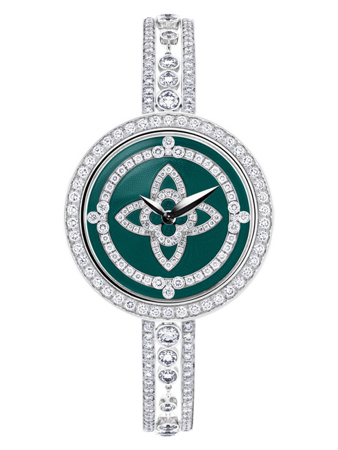 路易威登展示了一系列结合精湛制表技术和高级珠宝的珍贵手表。如此杰出作品需要纯手工技艺,只有少数工匠在日内瓦制作,显示所有不可思艺的女性手表。制作过程中,每颗钻石被逐一切割并镶嵌,逐渐汇聚成一轮钻石迷阵,令手表透出无与伦比的华美光彩。