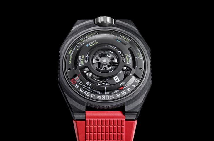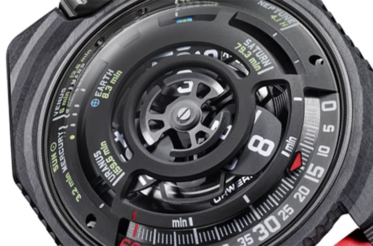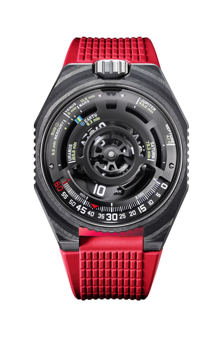 碳纤维材质/UR 12.02自动上链机芯/卫星小时、分显示/太阳光到达太阳系八大行星所需时间显示/蓝宝石水晶镜面/防水50米/表径51.73x43mm/参考价:NT$ 2,650,000