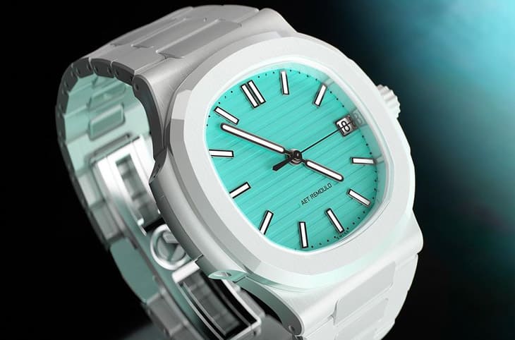 ▲AET REMOULD受到希腊莱夫卡扎当地海边景致启发,创作出以百达翡丽金鹰5711为基础的改表作品。Source:AET REMOULD