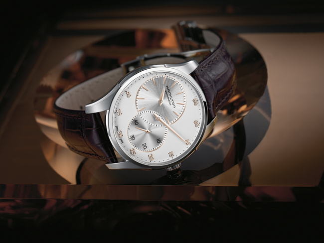 爵士大师时间玩家系列Hamilton Jazzmaster Regulator。将叁针一线表款,採取『偏心式』设计,力求高度精准与现代美感的完美詮释。汉米尔顿特别打造专属H12独家偏心机芯,让传统惯用的直列式叁针一线手法相形失色;为了让指针运行美感得更加分明,时间玩家系列表面佈局作最大化的叁针一线配置,有别于传统垂直对齐线,设计上採用45度角的崭新表面佈局,让时、分、秒针在运行有如爵士乐手表演般神采飞扬,透过珐琅素漆、放射状髮丝纹面,配合同心圆状折射光泽,表现叁种圈型计时盘的异素材融合之美,更加强化时、分、秒作更鲜明的视觉辨别;搭配不锈钢五排式砖型链带与高级鱷鱼皮表带,增益表款整体气势佈局。