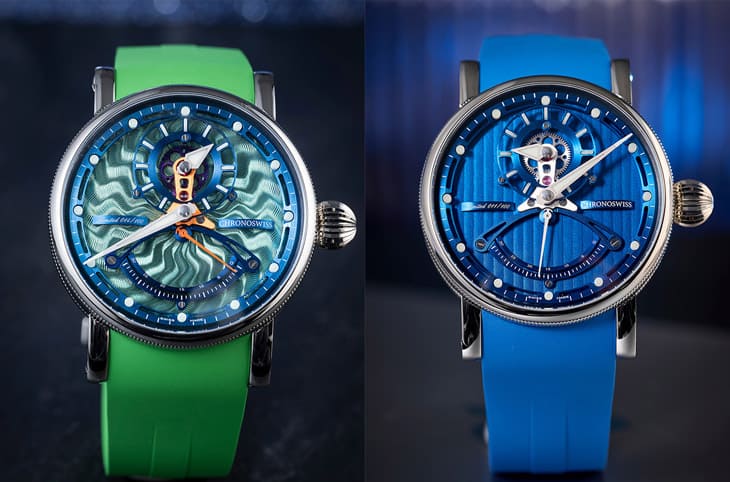 CHRONOSWISS瑞宝表在2024年的日内瓦钟表与奇迹表展中发布的新作双双奠基Open Gear系列的ReSec三针一线逆跳表,这款作品以独特的面盘显时格局以及抢眼大胆的设计风格与配色倍受收藏家喜爱,品牌之前推出的款式相当多,但其中不少在官网都已显示为"Sold out",可见这款作品的吸引力不容小覷。