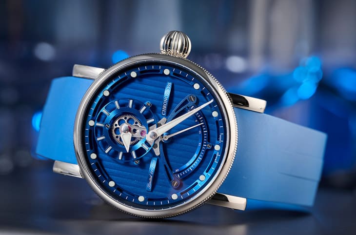 ▲「Vertical Blue蓝洞」的蓝色橡胶表带配上蓝色面盘显得优雅沉稳,类似的配色先前一向颇受市场欢迎。