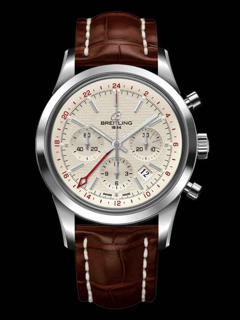 高贵雋永的非凡设计,简约凝练的别致格调,百年灵越洋世界时计时手表(Transocean Chronograph GMT)以超凡性能尽显尊尚奢华的越洋旅行精神。透过透明蓝宝石表底,高性能百年灵自制04机芯的精密运转一览无餘,该机芯配备实用的创新专利装置,经瑞士官方天文台认证(COSC),是极少数能够完美提供便捷双时区显示的计时机芯。旅行至地球另一端时,只需拉出表冠向前或向后旋转,即可将时针和日历迅速调至佩戴者所在时区,同时保持家乡时间的24小时时制显示。黑色表盘鐫刻精美guilloché格纹,搭配18K红金表壳和黑色鱷鱼皮表带,内敛中倍显越洋旅行者的睿智风范;精钢表壳搭配色泽考究的银色格纹表盘和棕色鱷鱼皮表带,嫻静中独具復古格调的柔美张力。温情圣诞与TA相约啟程,并肩记录旅途中的点滴时光,铭刻飞越大洋的超凡气魄与恆久魅力。
