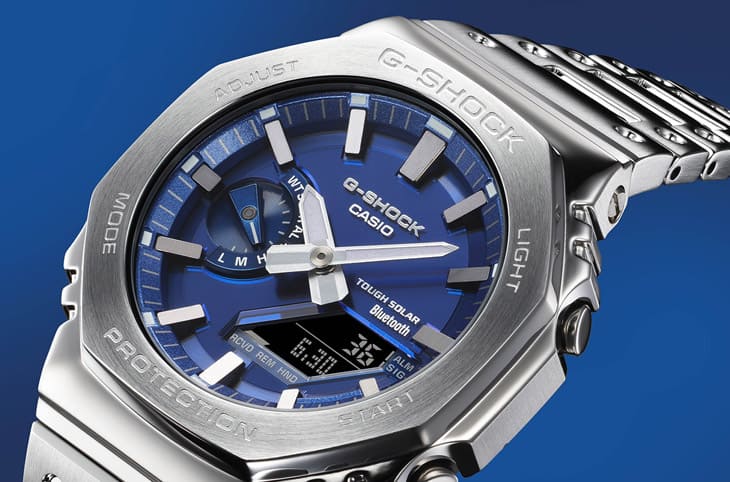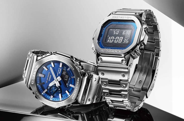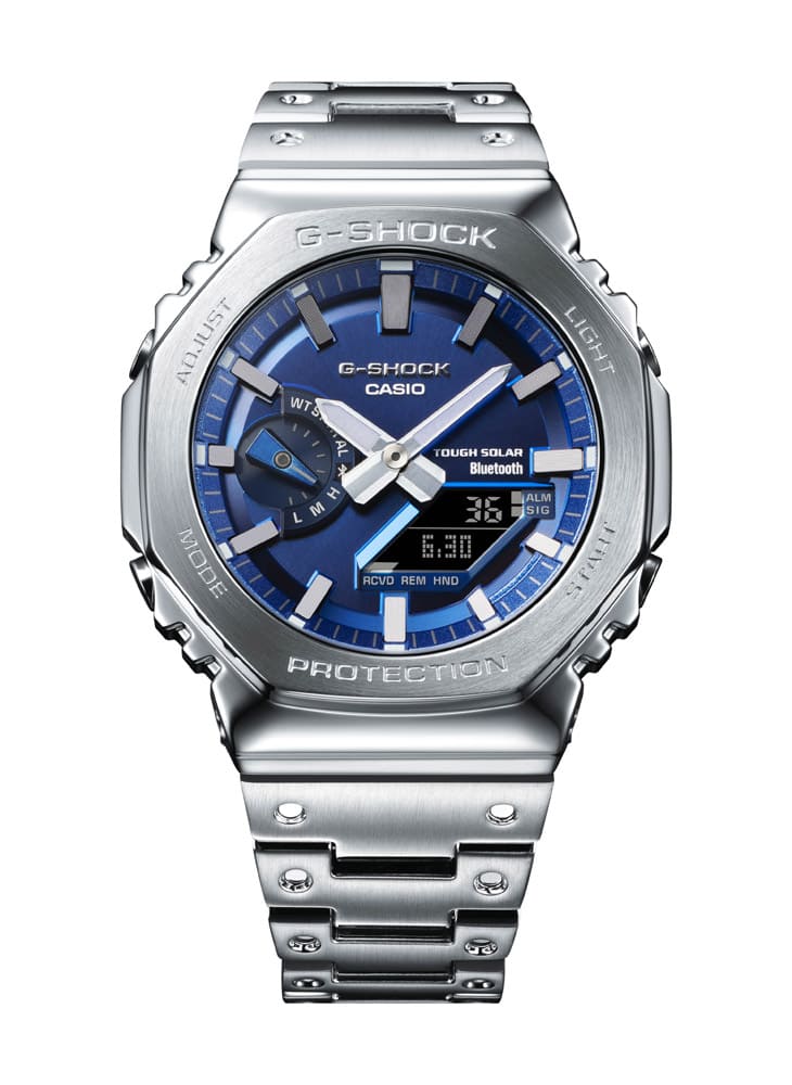 ▲G-SHOCK Full Metal系列新作共同特色是银色金属表壳、表圈搭配蓝色调面盘。
