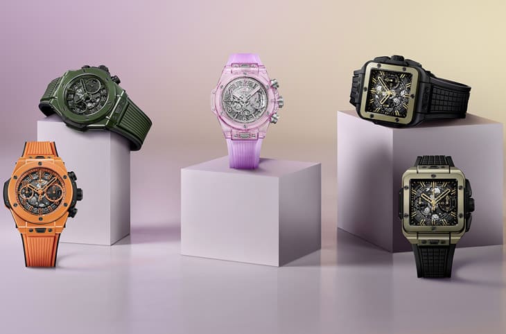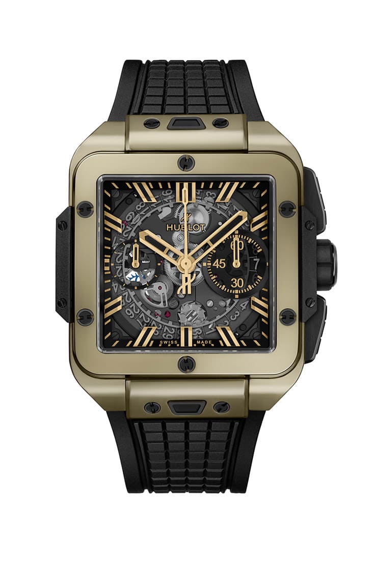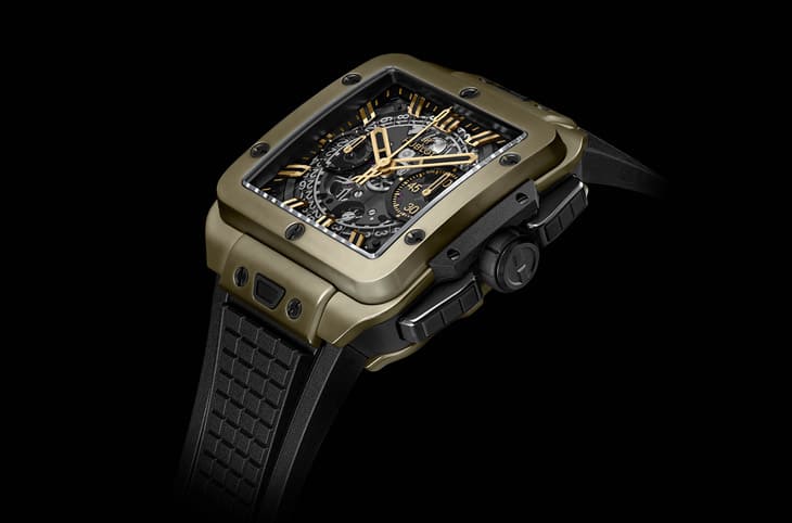 ▲宇舶旗下最年轻的系列Square Bang 2024年持续拓展阵容,品牌首次应用独家的魔力金材质制作手表表壳。