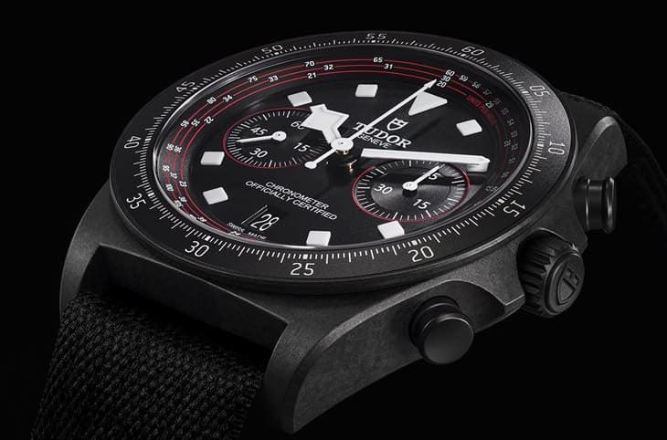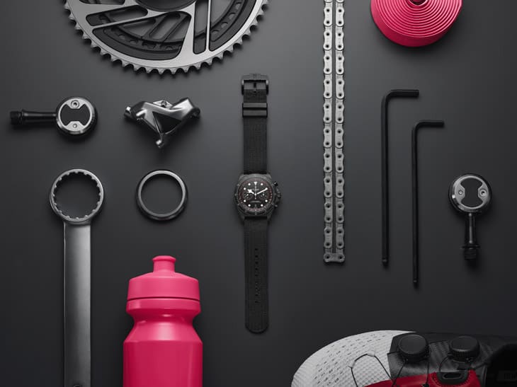 虽然名称同为Pelagos FXD Chrono,不过新登场的「自行车版」在外观方面便与前作有着明显区隔,帝舵从职业自行车领域获得启发,採用碳复合材质打造手表的外部零件,这点呼应着高级自行车往往应用大量碳纤维制作的规格,品牌于计时按把与表冠等零件另採钛金属制作,借助其坚固特性,替手表的耐用度带来加分效果。