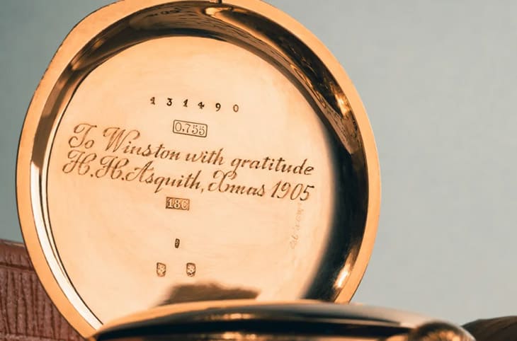 ▲表壳内侧刻有"To Winston with gratitude H. H. Asquith Xmas 1905."字样。Source:dawsonsauctions