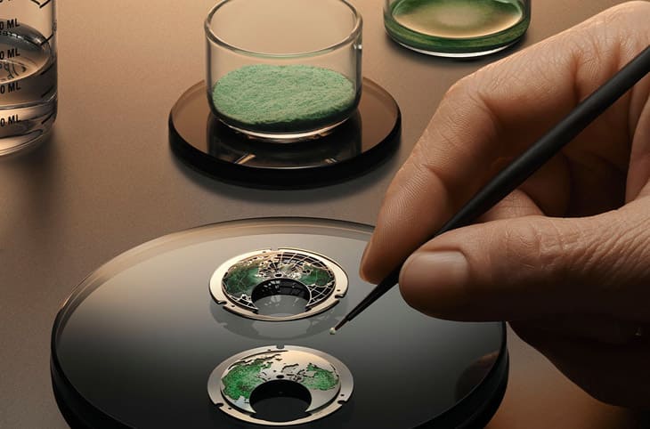 ▲积家光是用在制作珐琅面盘工艺的时间就达20个工时,地貌的高低落差是由多达10层的珐琅逐一堆叠才能详实呈现。