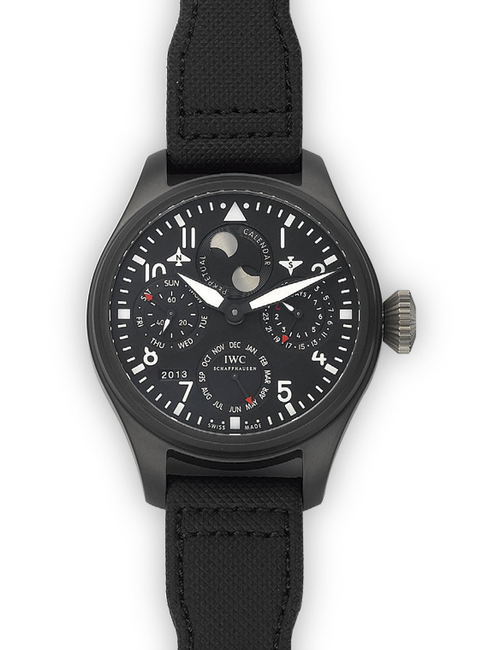 黑色陶瓷材质/51614自动上鍊机芯/时、分、小秒显示/月相、动力储存显示,万年历功能/帆布表带、摺叠扣/蓝宝石水晶镜面、螺丝固定式底盖/防水60米/参考价:NT$ 1,260,000