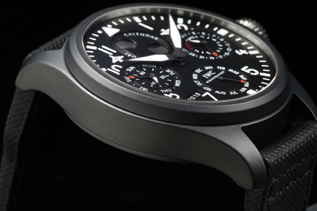 表壳主要採用黑色陶瓷,另外表冠是鈦金属,表扣则是不锈钢;Top Gun的表壳侧面原本都有部队的彩色Logo,不过这款却把它拉掉了。由于调校全靠表冠,表壳上也没有隐藏按把。