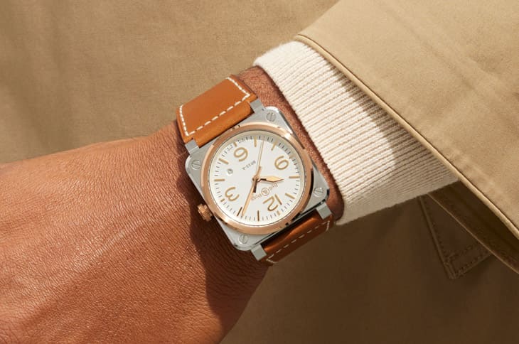 ▲跳脱过往的阳刚印象,BR 03 White Steel & Gold于佩戴者手上展现另一种风度翩翩的况味。