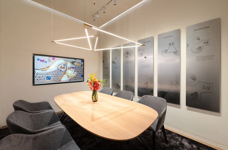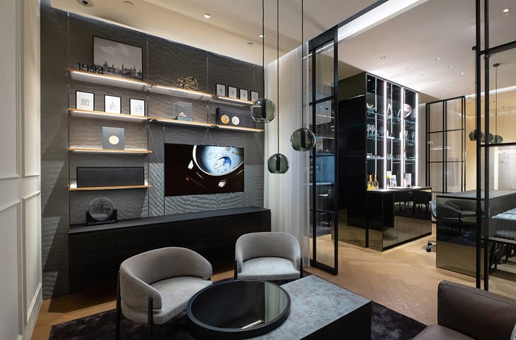 进入到室内可以依序体验到店内的五大主题空间,包括「精品陈列区」,顾名思义朗格六大系列的机械表作品,在此即能让人大饱眼福,此外专为品牌忠实客户设置的「VIP区」,除了可以让客户在此享受愜意不被打扰的赏表时光,也能接受品牌提供的专业諮询服务。