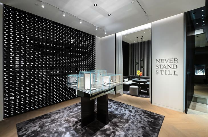 全台第一家朗格专卖店就位在台北101购物中心3楼,整间店佔地将近45坪,空间相当充裕。品牌从店外到店内的装潢都用心呈现其出身于德国格拉苏蒂小镇的血统。一走近这间店首先会被店外散发强烈气场的设计所吸引,上方的黑底加上银色A. LANGE & SÖHNE字样相当醒目,大片落地窗让人可以一窥店内的装潢与摆设,明亮而简洁俐落的室内氛围,还没真正踏入店内就已经让人初步感受。
