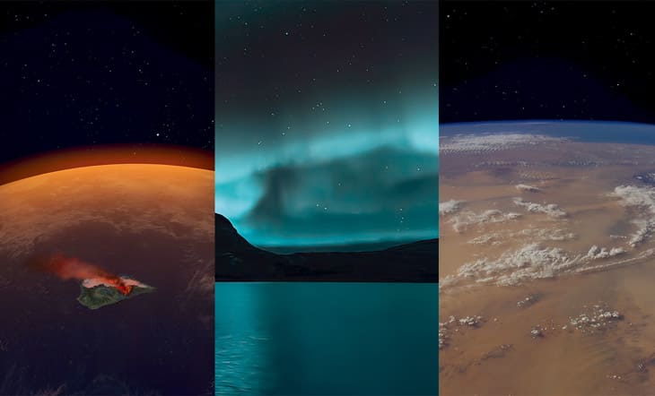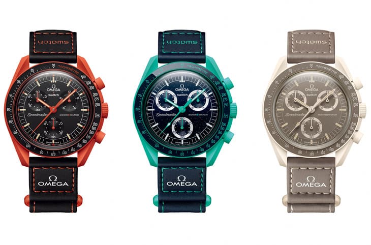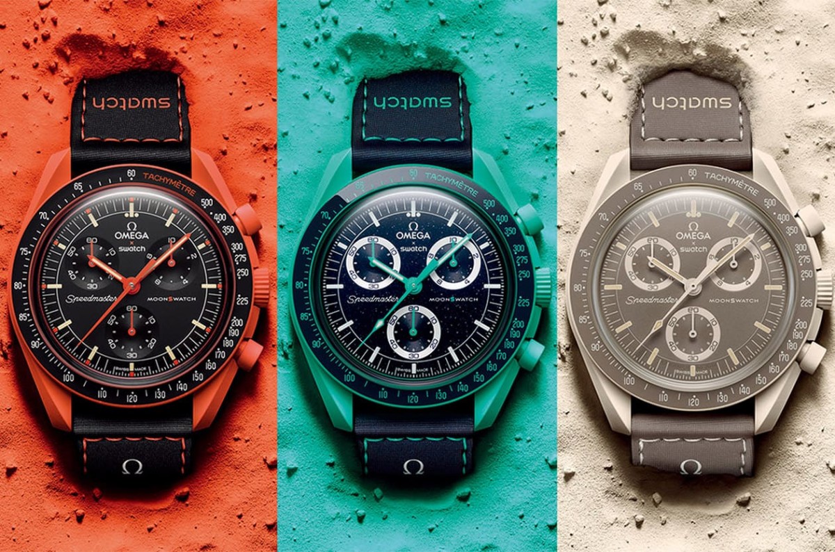 ▲SWATCH从太空中看到的地球美景获得启发,分别以火山熔岩、极光和沙漠为主题设计全新MoonSwatch。