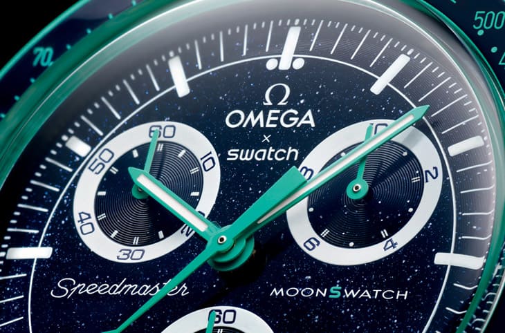 欧米茄 x SWATCH这两年的超级话题夯表——Bioceramic MoonSwatch 2024年在3月~4月之交时连发了两款Bioceramic MoonSwatch Mission To The Moonphase,一款採用白色生物陶瓷(Bioceramic)表壳,另一款则是黑色生物陶瓷表壳,呈现出全白与全黑的强烈对比风格,而它们和先前推出的MoonSwatch最大不同便在于增加了月相显示功能,而且还把超霸史努比登月表的元素融入手表中,将史努比与糊涂塌客图案与月相转盘的月亮巧妙结合,瞬间让手表功能更强、赏玩乐趣也更高。不过也就从那时起SWATCH沉默了两个多月的时间,直到最近品牌又有动作了,他们新推出3款Mission on Earth,看到这裡先别急,Mission on Earth的确在2022年已经随着当时的星体主题出过一次,不过这次品牌的创作灵感是从地球延伸而来,将太空人眼中所看见地球的3大美景当作这次的设计主题,赋予手表有别过往的视觉新气象。