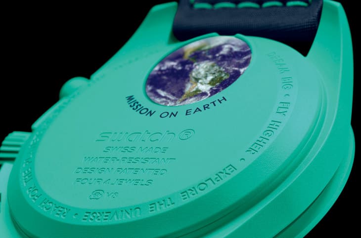▲3款MoonSwatch新作的表背电池盖都印有彩色地球图案。