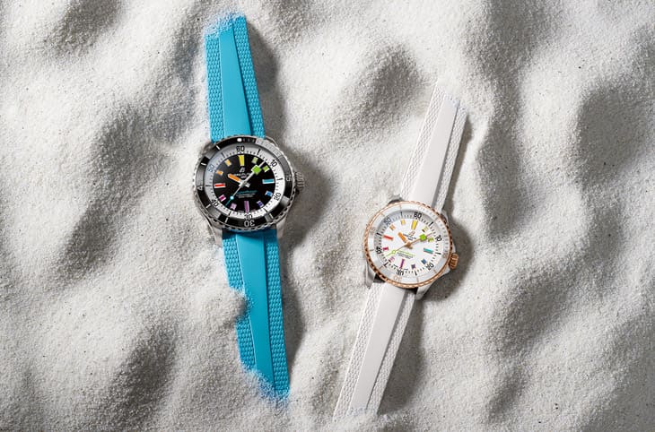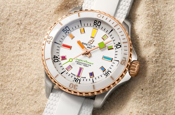 BREITLING百年灵在2024年夏天到来之际,应景地推出了多款Superocean超级海洋系列新作,包括防水性能达1000米的深潜手表,以及防水300米、表壳尺寸多元的专业潜水表等,而且品牌不只出新表,他们也发挥自己热爱运动的精神,精心筹画出版了一本刊物:《The Breitling Book of Surfing百年灵冲浪圣典》,和手表搭配相得益彰,深深吸引冲浪爱好者和表迷的目光。
