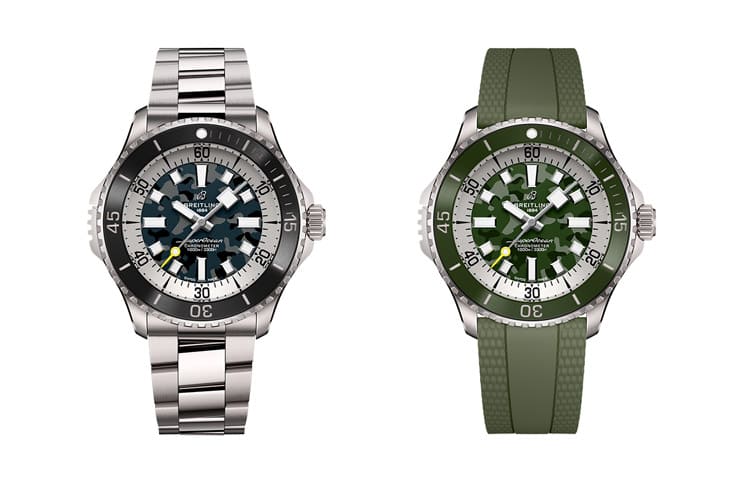 ▲专业深潜手表Superocean Automatic 46 Super Diver今年新增绿色或黑色迷彩面盘款式。