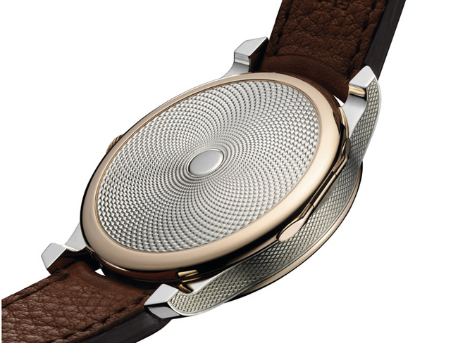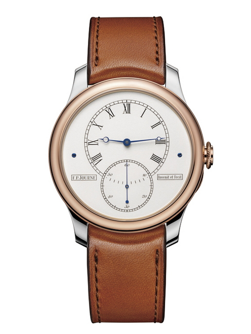 F.P.JOURNE把陀飞轮的原型以手表的形式呈献出来,新品所用的材质跟他于叁十年前所用的一样——表壳以银打造而成,饰以扭索饰纹,并配以两个4N玫瑰金表圈。