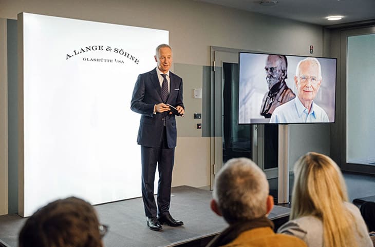 ▲2022年10月13日,朗格CEO Wilhelm Schmid在仪式上向Walter Lange致敬。