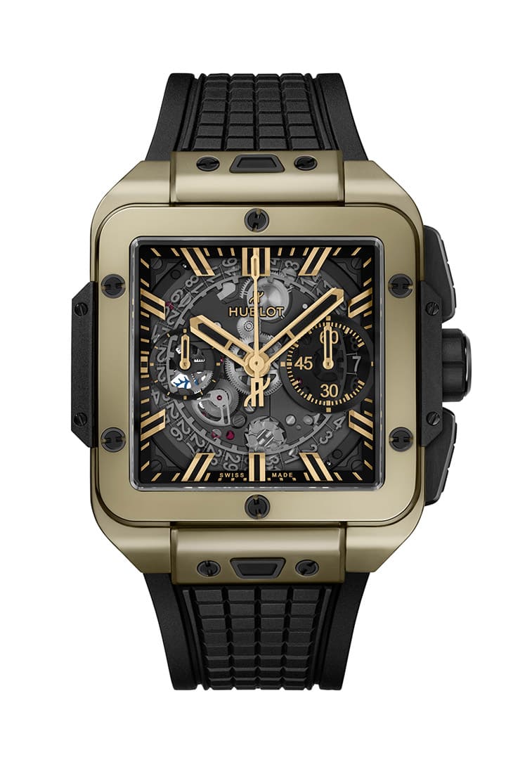 ▲Square Bang系列为宇舶近年全新力作,搭配品牌研发的魔力金材质相得益彰。