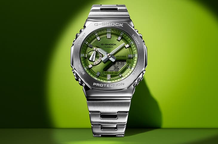 ▲G-Steel系列新作GM-2110D以不锈钢制作手表特色的八角形表壳,并採用5种面盘配色提供市场丰富选择性。