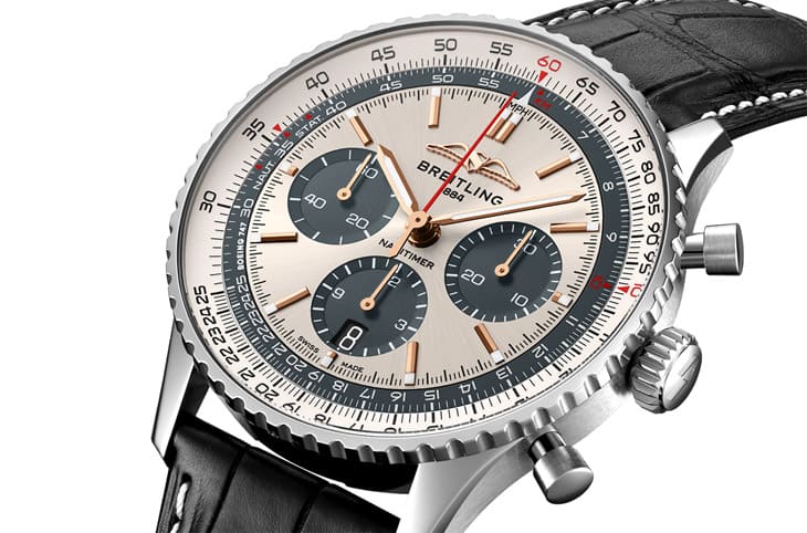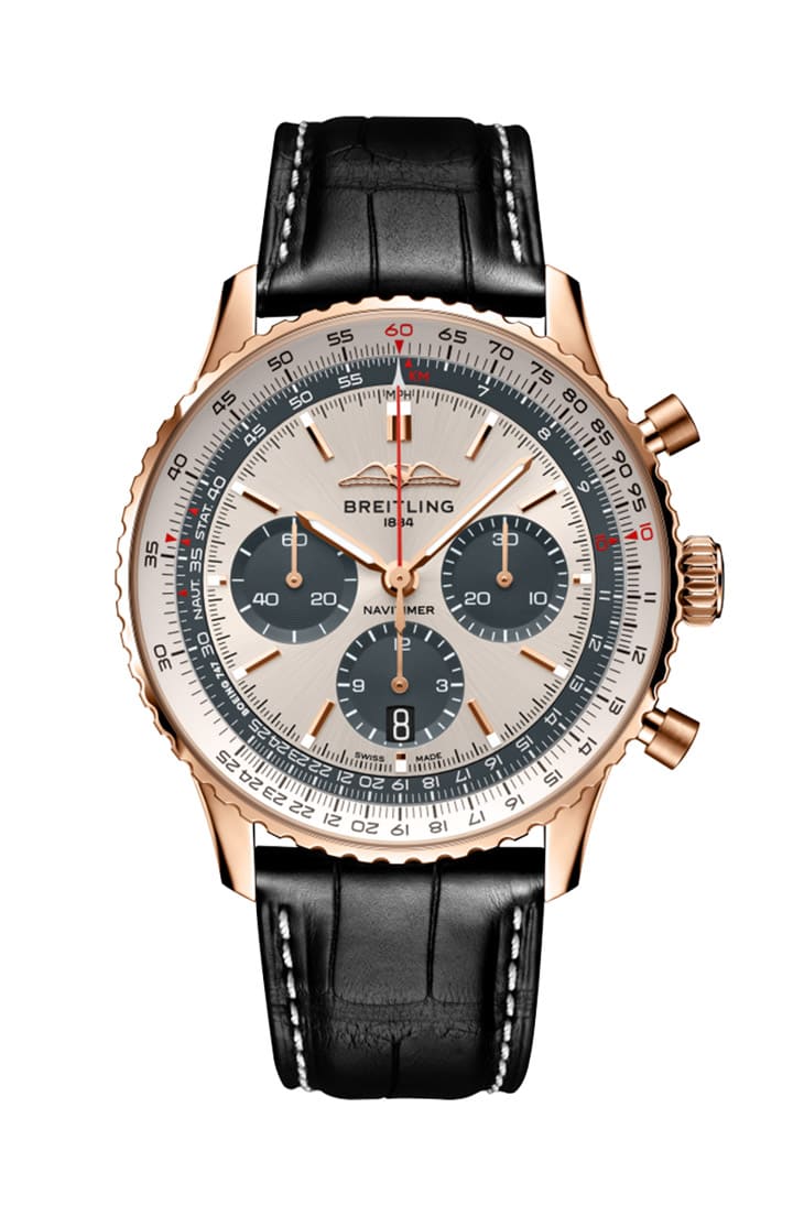 ▲Navitimer B01 Chronograph 43 Starlux Airlines Edition分别有玫瑰金或不锈钢款式,前者限量25只相当稀有。