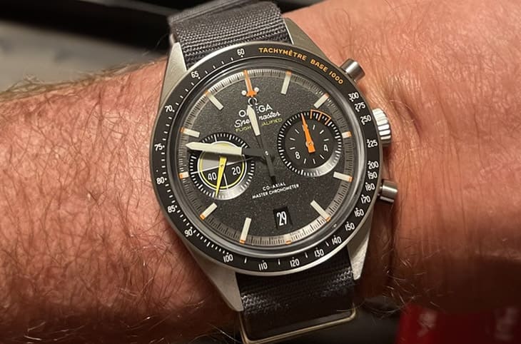 这款超霸飞行表外观让人有一种像是在和欧米茄1970年代创作的Flightmaster致敬的既视感,Flightmaster当初是品牌替飞行员开发的作品,特徵是用顏色明艳的指针来指示各种功能,让人可以一目瞭然。当时的Flightmaster主要採用红色或黄色指针,然而表迷热议的超霸手表(名唤Speedmaster Flight Qualified)则是使用橘红色与黄色指针吸引视觉焦点,其中黄针为小秒针、橘红针则是计时指针。