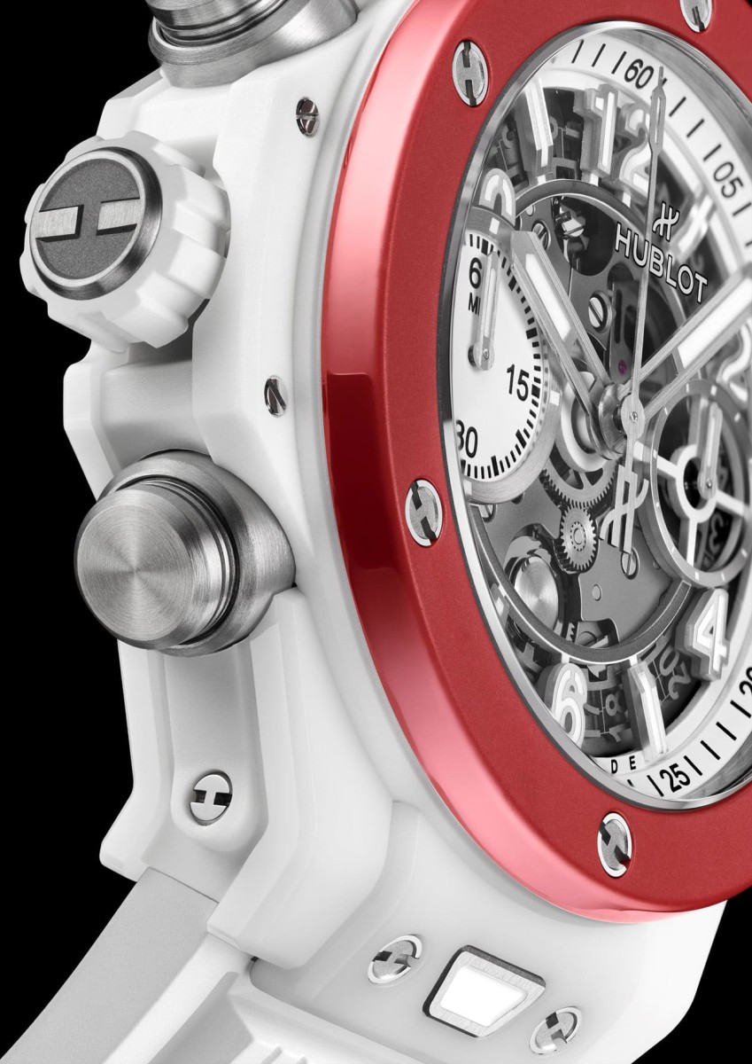 近期高阶运动表市场上就出现了一款令人惊艳的生力军,它是宇舶旗下的Big Bang Unico左冠陶瓷计时码表。这款表之所以一炮而红的关键有许多,包括它是UNICO飞返计时机芯出道以来首度以左冠设计现身,同时它揉合品牌首见的雾白陶瓷表壳搭配雾红陶瓷表圈营造「睛」艳又抢眼的外观,同时陶瓷材质的质感与修饰也很细致,像是红色陶瓷表圈的侧面额外以拋光修饰展现出宇舶讲究的设计概念与高超的工艺技术。