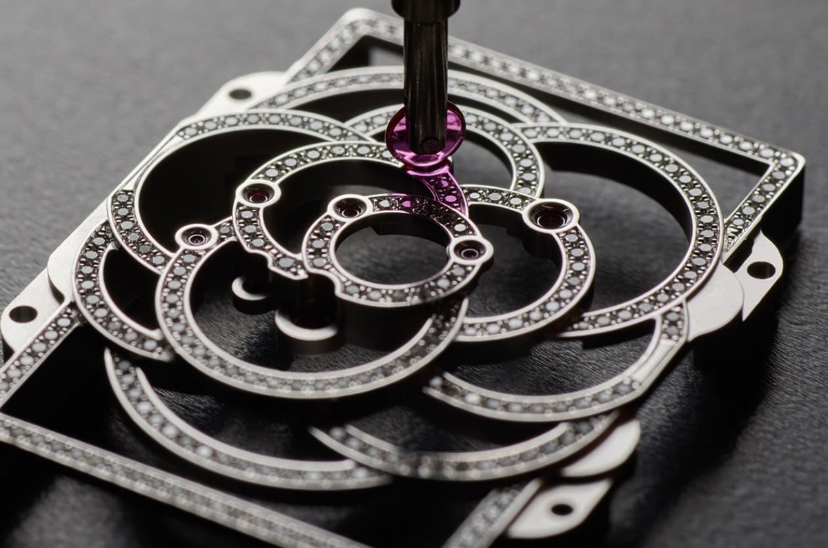 跳脱传统机芯的金属原色设计,对于黑色情有独钟的香奈儿也将这种色彩带入自制机芯中,除了镶钻或是导入蓝宝石水晶零件的部分作品外,品牌多数自制机芯都将主机板和桥板以ADLC类钻碳镀层形塑出黑色为主的外观,由此呼应黑色在香奈儿文化中象徵的时尚经典风格,也表现出不受传统制表框架束缚的自由创作精神。