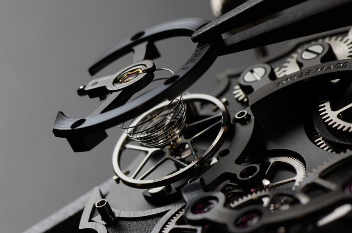 ▲Monsieur Superleggera深邃黑腕表搭载Caliber 1,面盘风格受到赛车仪表启发,散发运动个性。