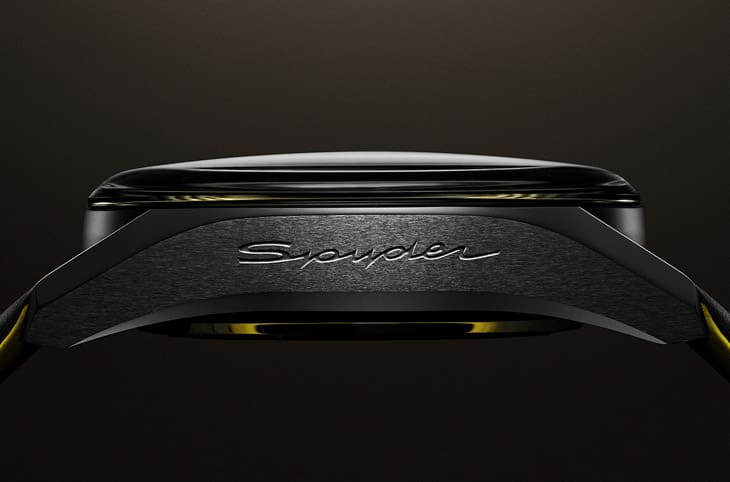 ▲手表设计灵感来自保时捷550 Spyder这部曾在卡莱拉泛美公路赛夺冠的经典赛车,表壳侧面因此刻上赛车名称。