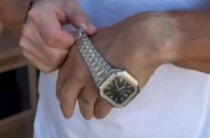 马克华伯格一边介绍这个好东西,说着说着他突然兴致一来开始脱下手表和T-Shirt,然后就跑进去蒸气室裡开始试用起来,这段影片不长,拍到马克华伯格进去后一脸放松的样子旋即结束。而其实当影片开始他在介绍蒸气室时,手上戴的表已经让人隐隐觉得有点眼熟了,结果当他要进入蒸气室开始脱表前,镜头拉近直接带到手表,这下再也没啥疑义,那就是Cubitus系列中的不锈钢入门款Cubitus 5821/1A无误!