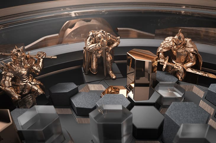 2024年新款的圆桌骑士手表重现梅林的魔法世界之餘,手表的要角还是离不开12尊金雕骑士人偶,品牌先由草图开始设计,接着制作出具体的树脂模型,然后经过立体扫描后再以铸造技术打造出每一尊高度皆为6mm的骑士金雕人像(带有时标的作用)。铸造完成后的骑士金雕并非完成品,因为罗杰杜彼的工艺师还会以手工精细雕琢,将他们身上的服装、手上拿的武器都刻画得入木三分才算大功告成,品牌在骑士人像快完工时还会在表面加上一层黑色铜绿,此举一来可以收敛金雕的光芒,还有助于突显金雕的立体感,展现更丰富的细节。