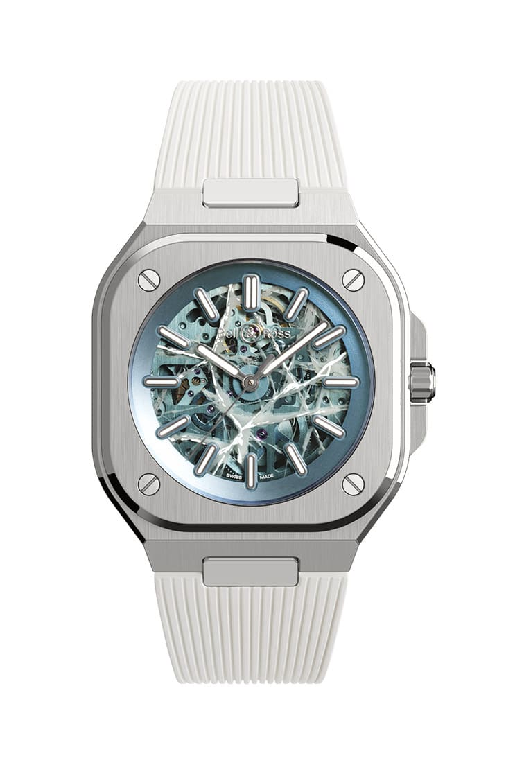 ▲BR-05 Skeleton新作以冰天雪地为灵感,面盘的冰蓝色带有特殊设计,近看更觉奇特。