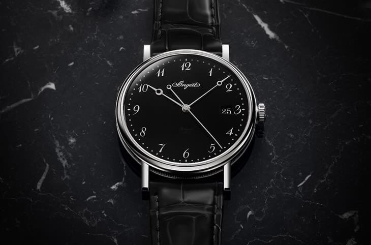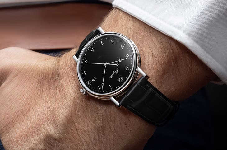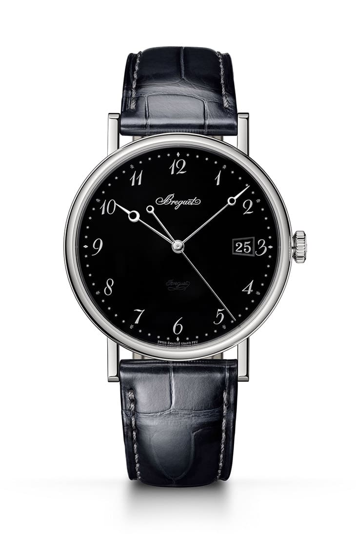 宝璣以铂金制作出的Classique手表,包括侧面为钱币纹的表壳、表耳、表圈和表冠等各式零件,不说你可能没意识到,原来他们这次竟然是第一次用铂金创作Classique系列作品,箇中含有里程碑式的意义不言而喻。Classique 5177的表径为38mm,刚好和现代正装表追求的Just Size不谋而和,由于这款作品功能较简单,因此表壳厚度为8.8mm,相对纤薄的设计佩戴在手上的舒适度也会随之提升。宝璣替手表配置的是黑色鱷鱼皮表带,表带的深色和铂金材质的浅色对比,有效地烘托出表壳材质的晶亮感,同时表带顏色也蕴含呼应手表面盘深邃色泽的用意。